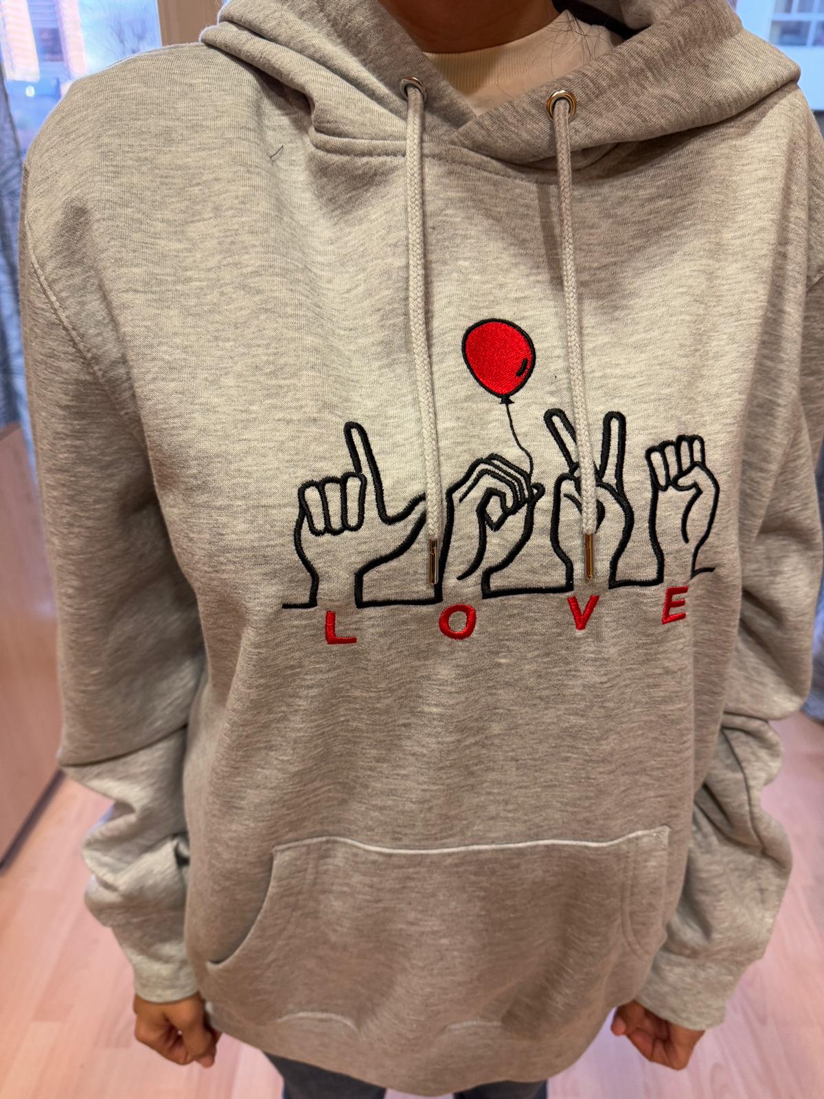 Esta sudadera con capucha combina comodidad y estilo con un diseño único. Bordada a mano con la palabra «Love» en un elegante y delicado estilo, es perfecta para añadir un toque especial a tu look diario.